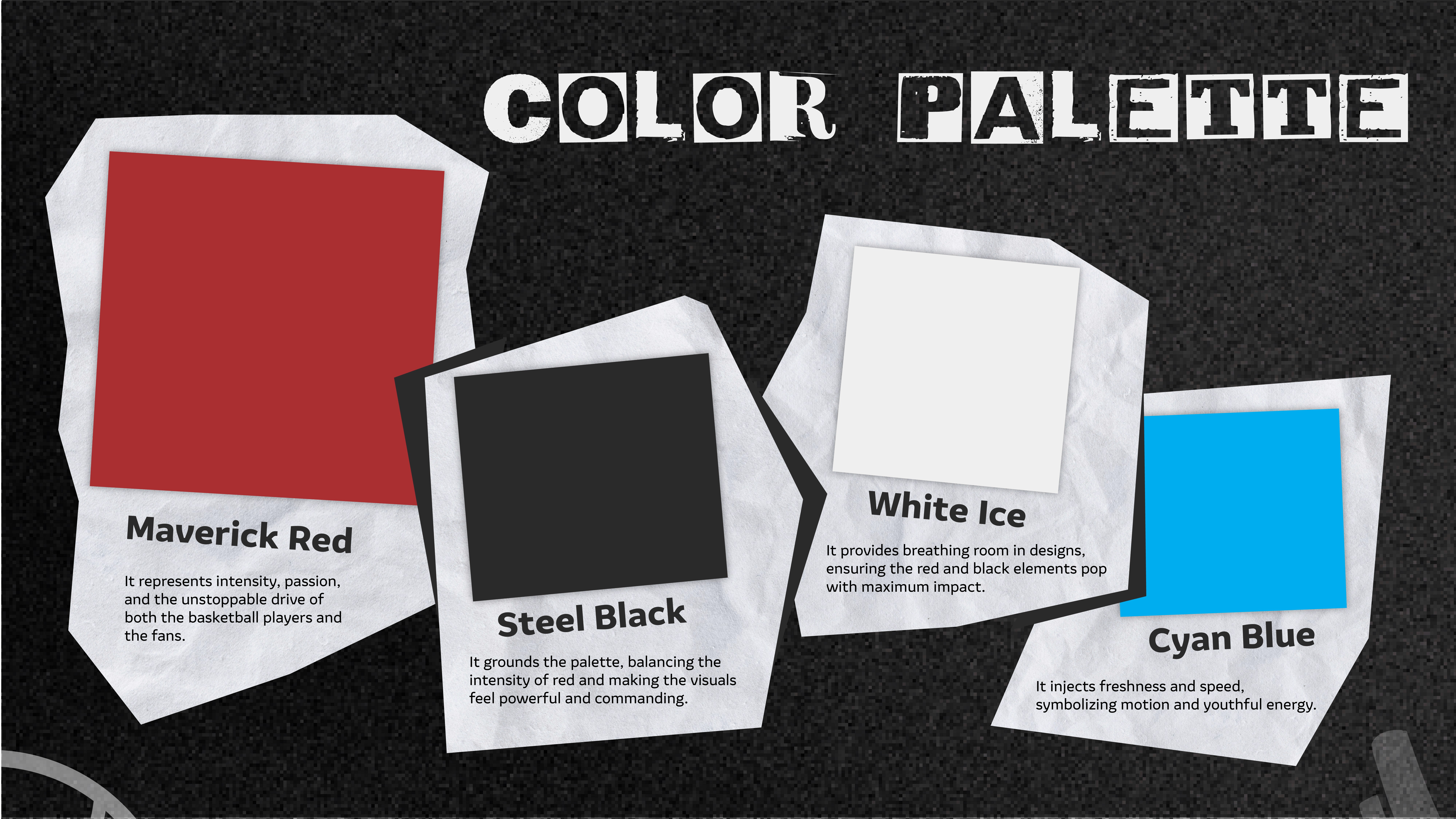 Instead of a standard retro sports look, we created a "digital glitch" effect by clashing the aggressive Maverick Red and Steel Black against a vibrant, electric Cyan Blue. This keeps the brand feeling raw but modern, ensures the brand vibrates with energy on every screen.