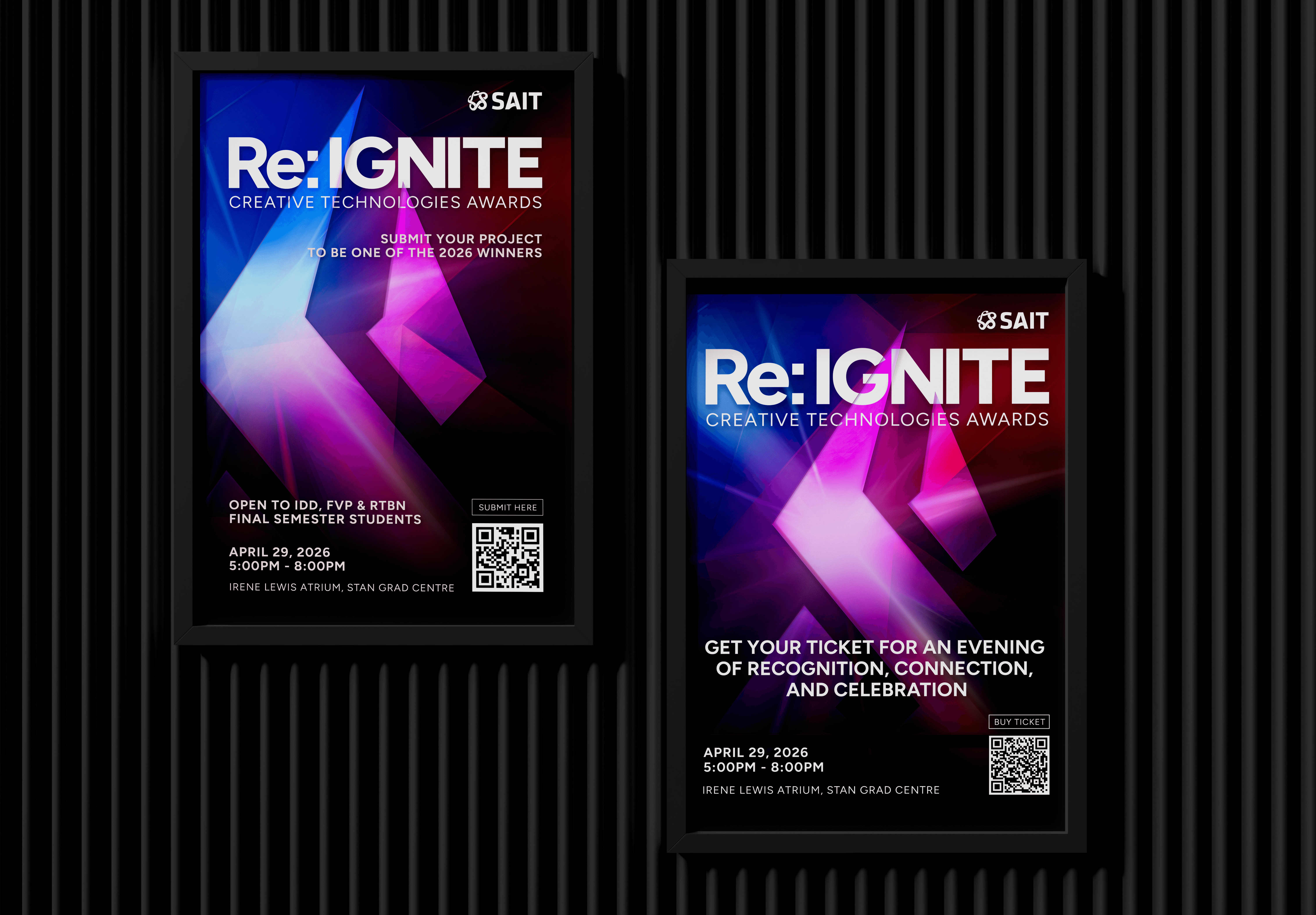 Held every year at SAIT in Calgary, the event brings together graduating students, faculty, industry professionals, and donors for an academy-style awards ceremony and networking gala. It serves as the formal transition moment between student life and professional industry - the night where student work meets real-world recognition.