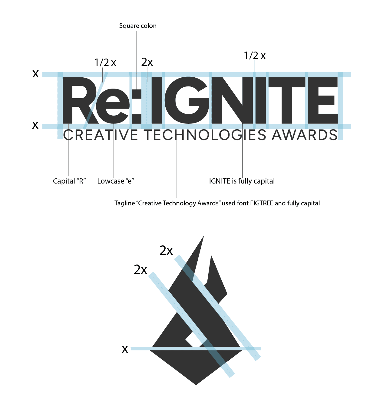 The core strategic decision was to separate the brand into two tiers: a permanent master brand and an annual campaign layer. Re: IGNITE Creative Technologies Awards would function as the institutional identity that persists indefinitely, while each year's campaign theme refreshes the visual language on top of it.